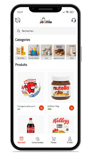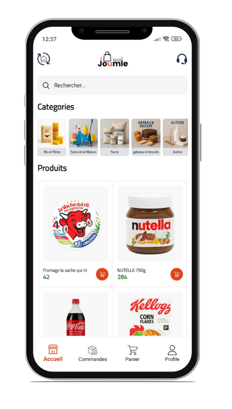 Joumle est une plateforme mobile innovante qui facilite vos courses en ligne, offrant des prix compétitifs directement issus des grossistes pour une livraison rapide à domicile.